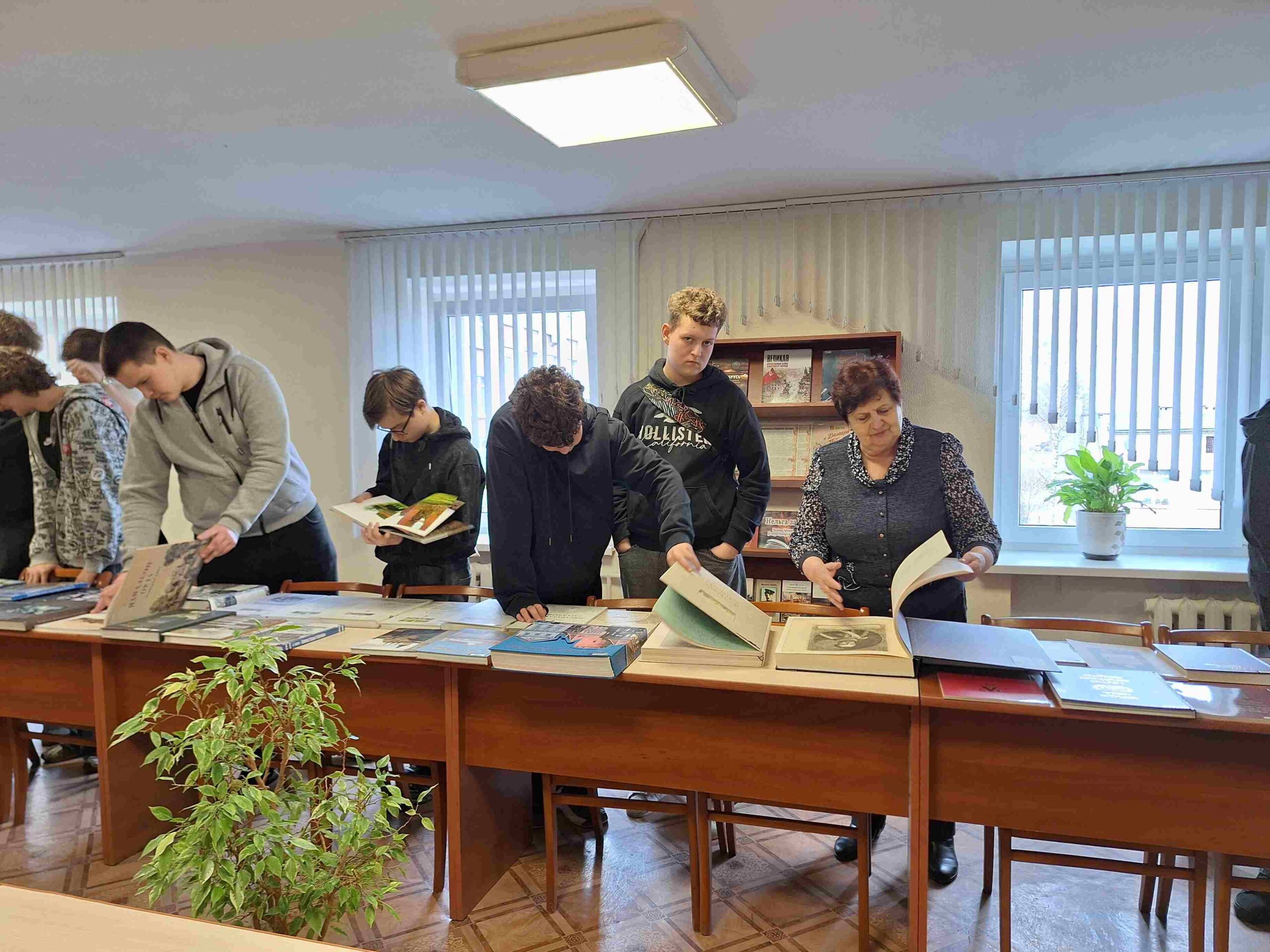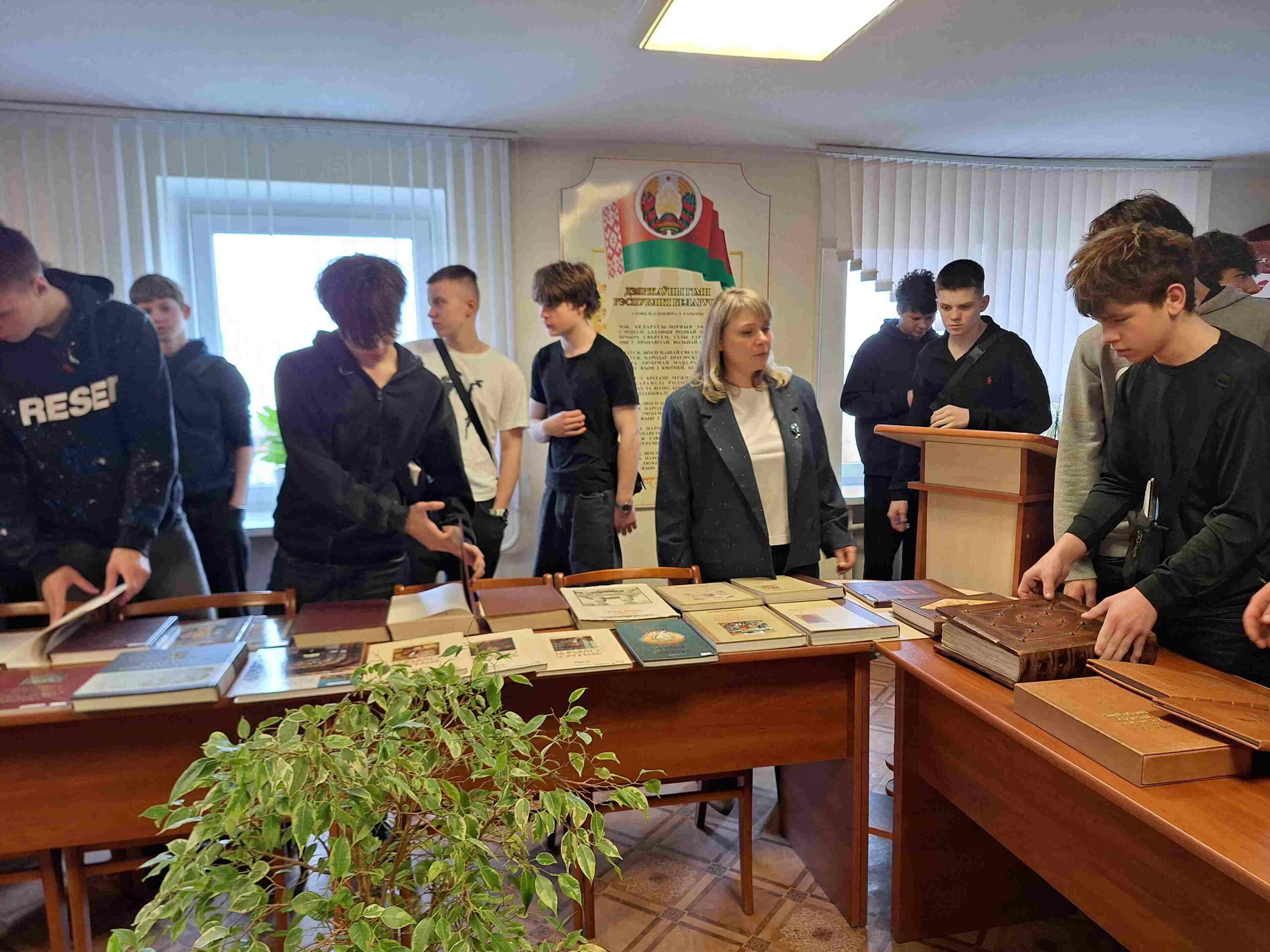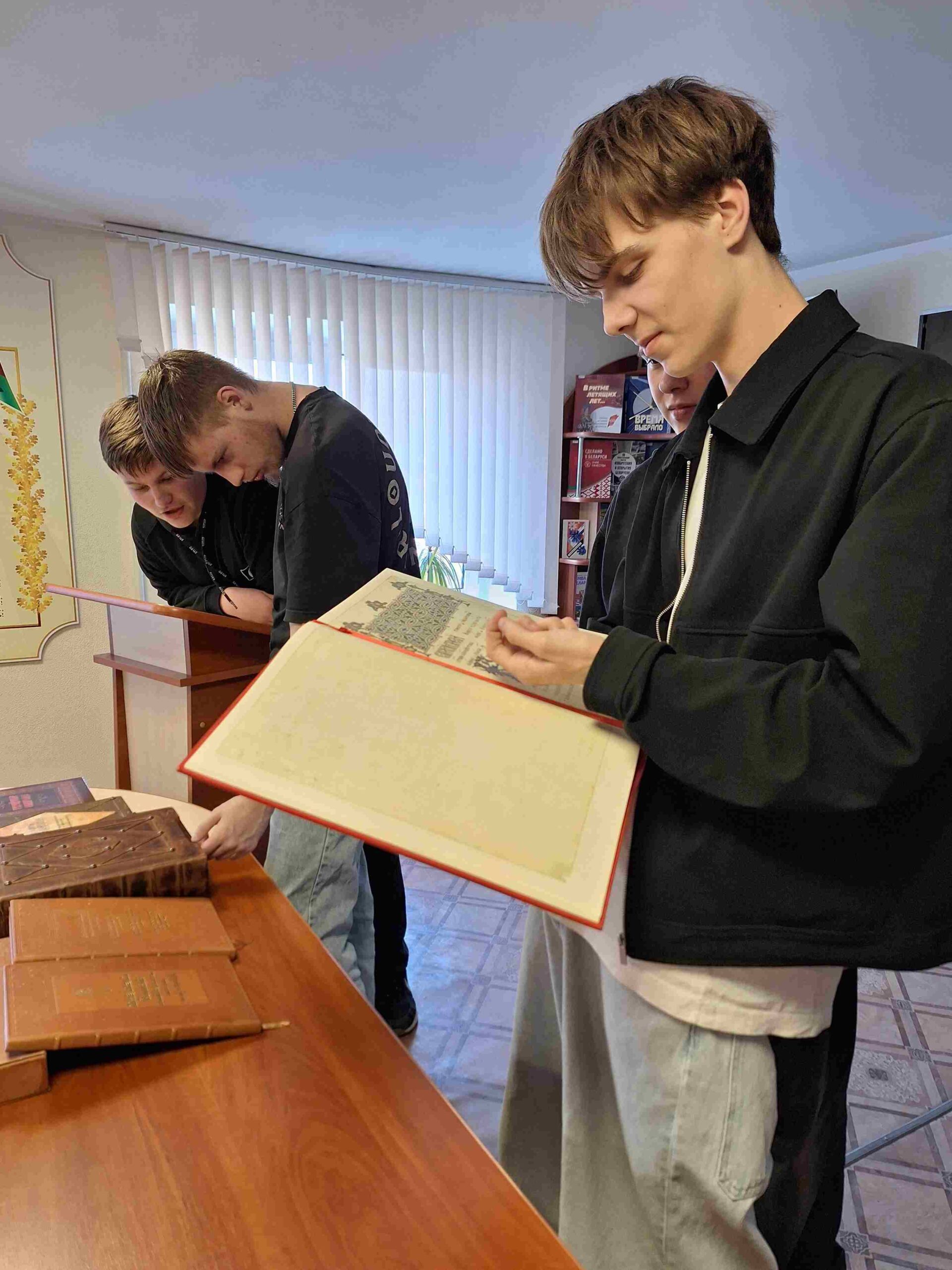 Напрыканцы мерапрыемства навучэнцы мелі магчымасць патрымаць у руках і пагартаць старонкі Тураўскага, Полацкага, Слуцкага Евангелляў, створаных у ХI – XVI стагоддзях і шматлікіх іншых кніг, прадстаўленых на выставе. Са зместам кніжнай выставы таксама пазнаёміліся навучэнцы 2-га курса 445-й групы, якія прысутнічалі на мерапрыемстве разам з куратарам А.І. Пякарскай.