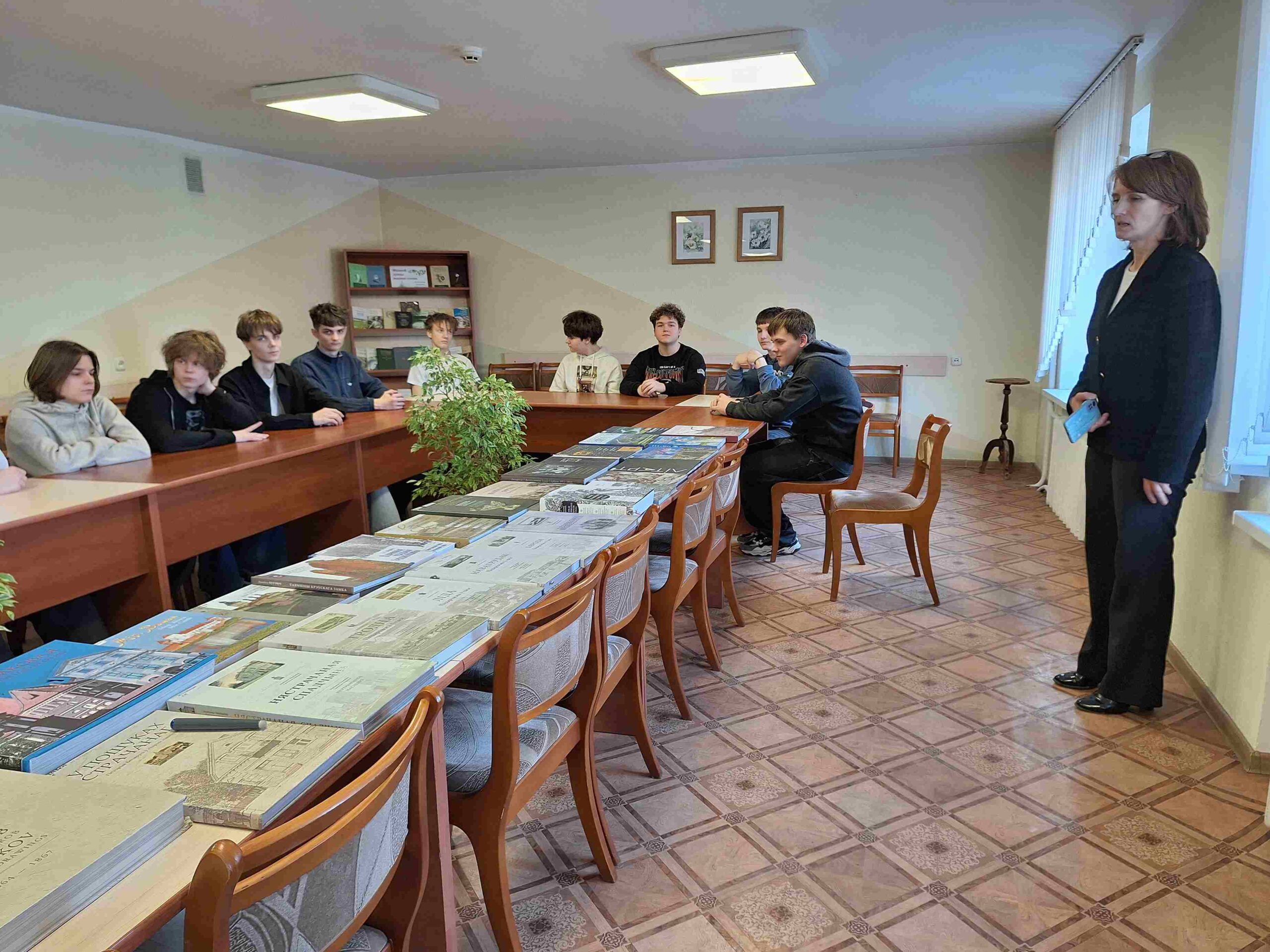 Вядучы бібліятэкар аддзела мастацтва Пугачэўская Таццяна Васільеўна прапанавала навучэнцам 1-га курса 457-й групы, куратар – М.І. Басінская, прэзентацыю “Человек и книга», з якой яны даведаліся аб з’яўленні і бытаванні першых у свеце кніг, такіх як шумерскія гліняныя таблічкі, егіпецкія папірусы, сярэдневяковыя пергаментныя кнігі.