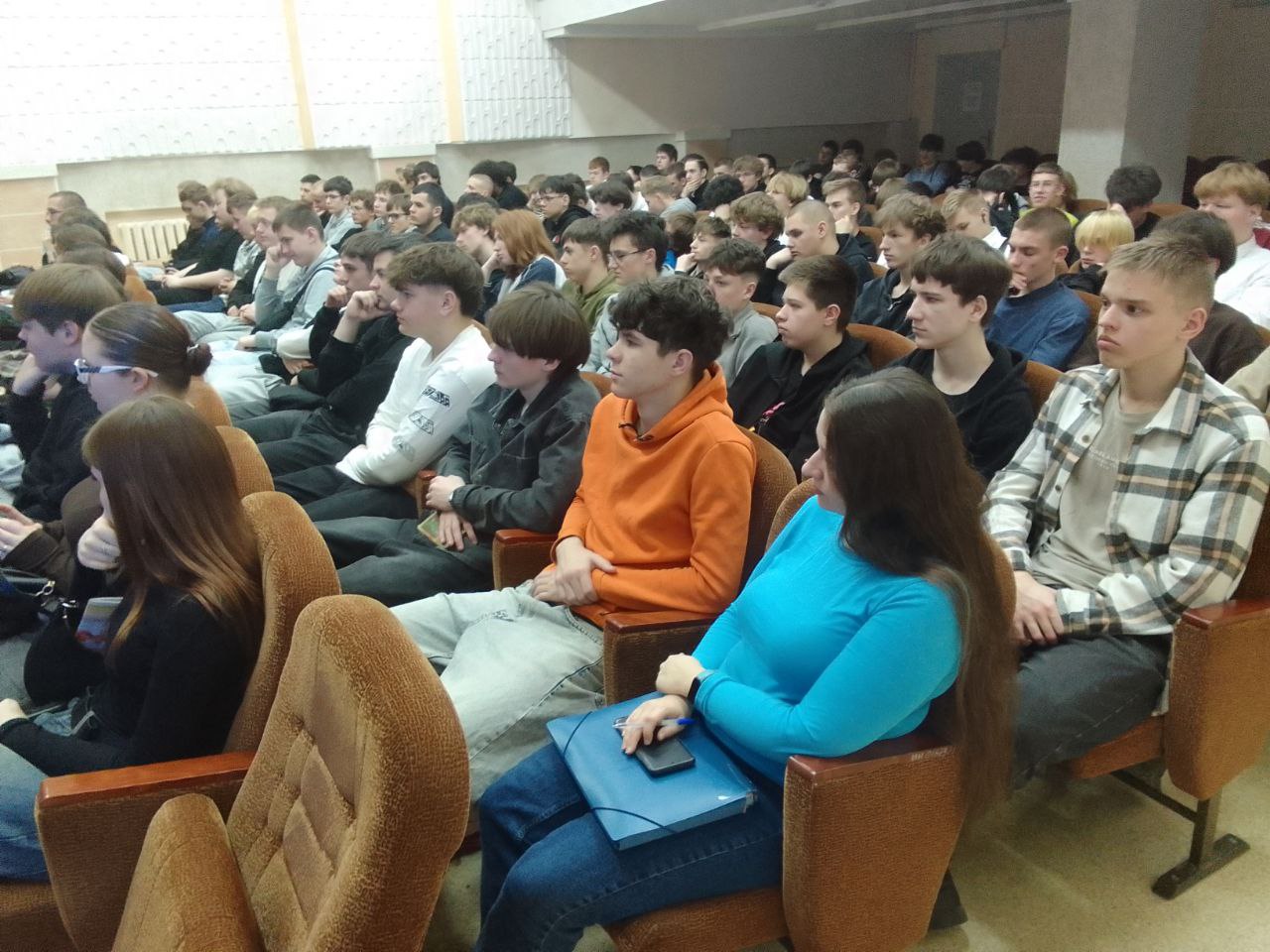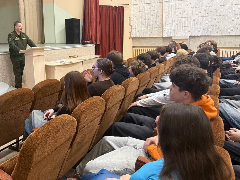 Военнослужащие 557-й инженерной бригады посетили Гродненский государственный колледж строительных технологий. Встреча заместителя командира по идеологической работе старшего лейтенанта Е.О.Корейво с будущими строителями прошла в формате живого диалога.