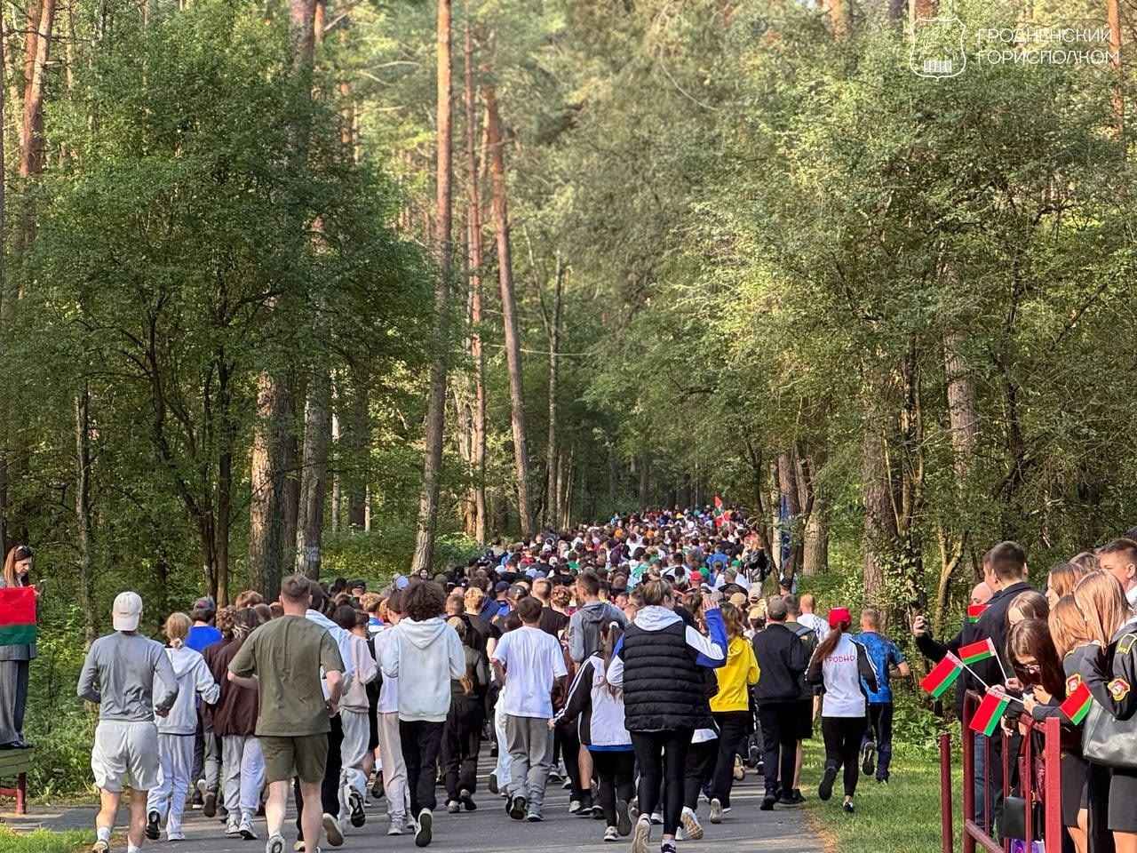 В лесопарке Пышки собралось около тысячи человек – это и бегуны, и группы поддержки. В пробеге поучаствовали все, кто любят спорт, бег, здоровый образ жизни и, безусловно, — свою страну.
