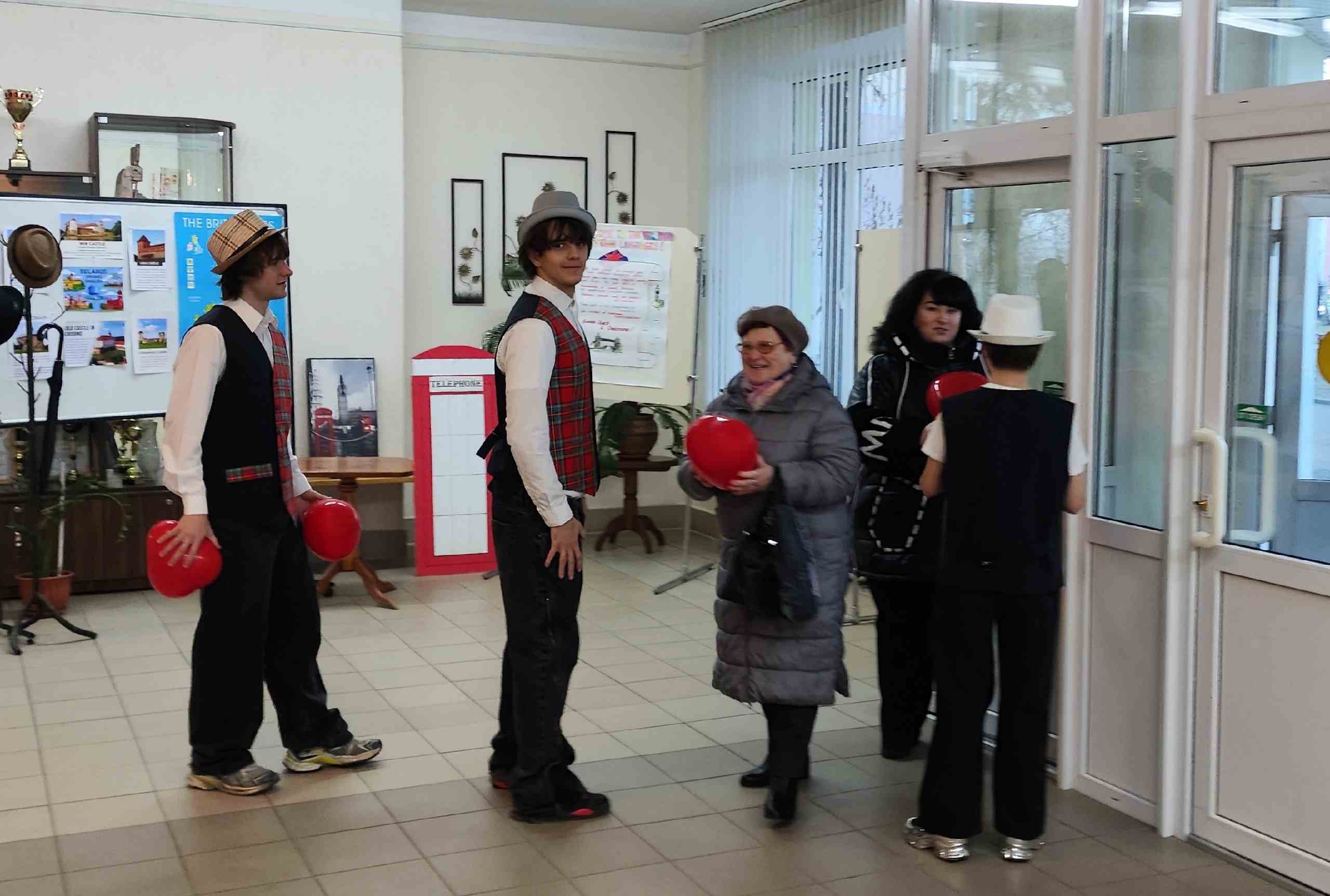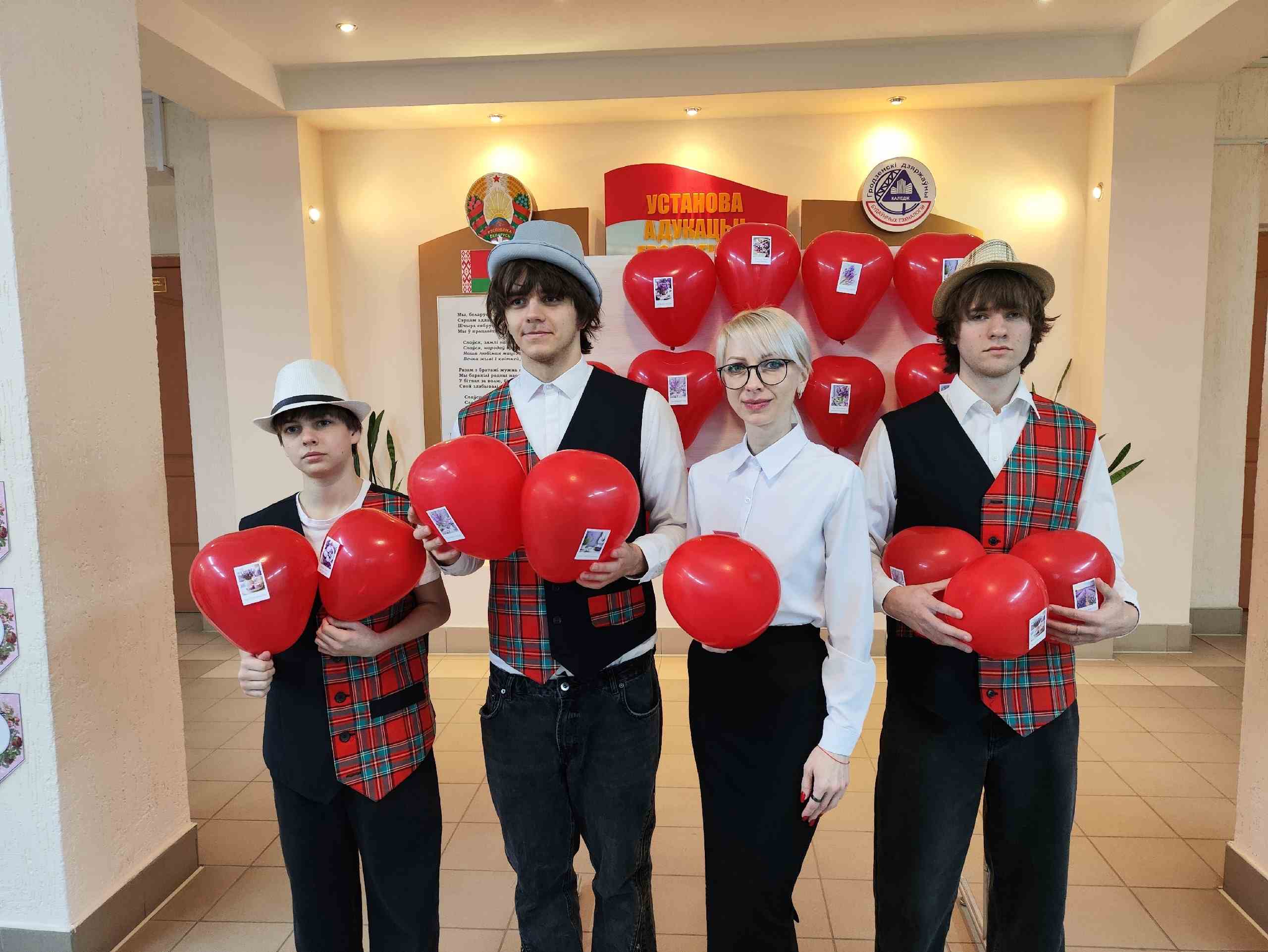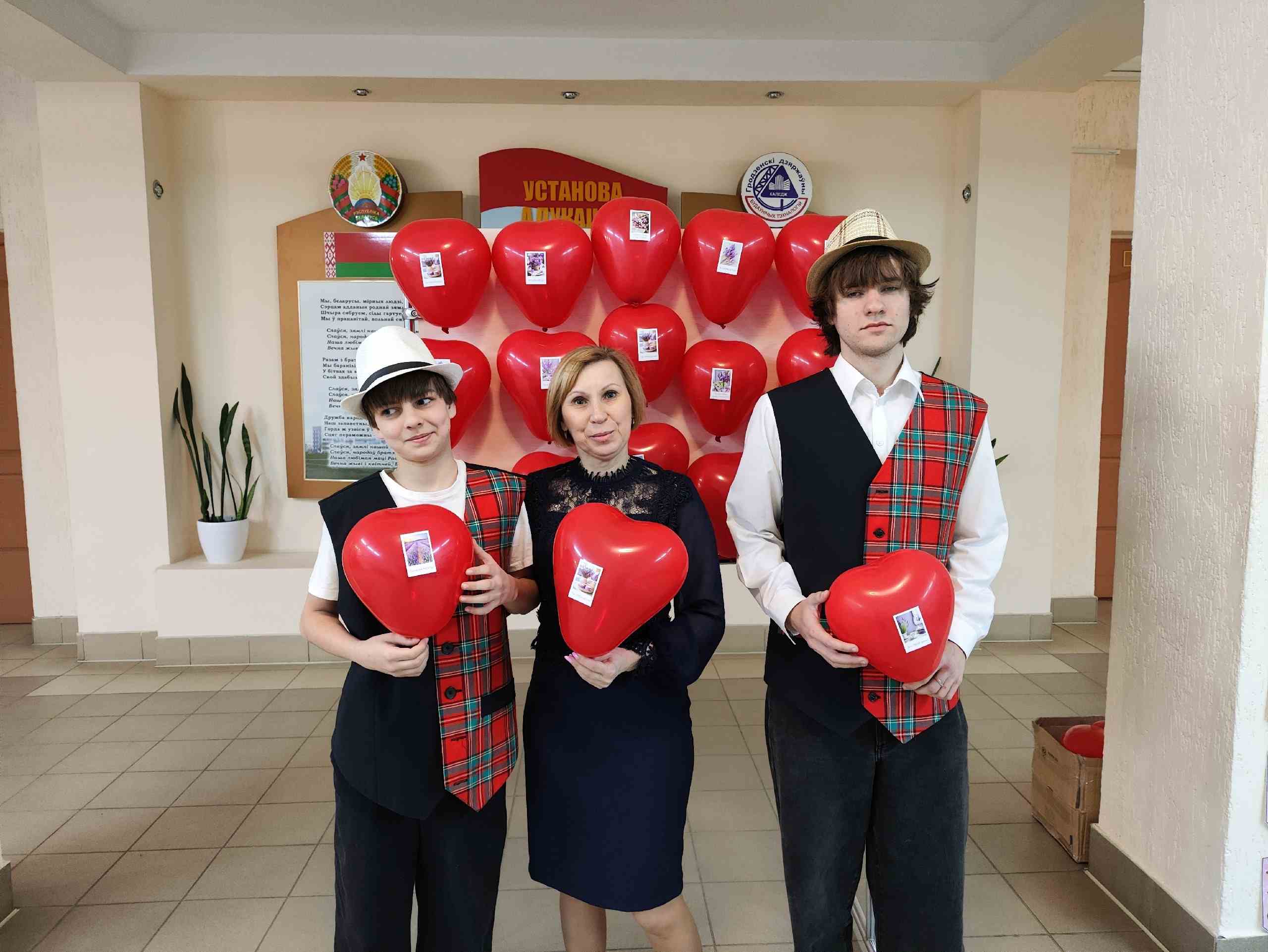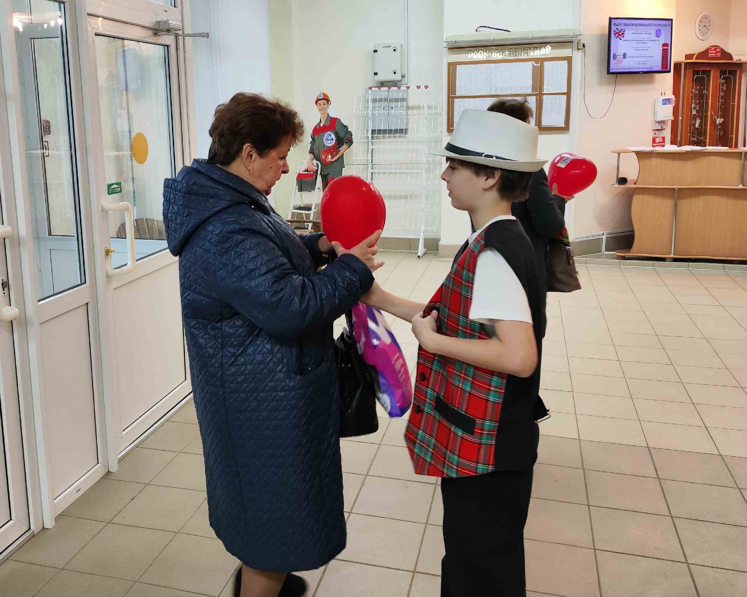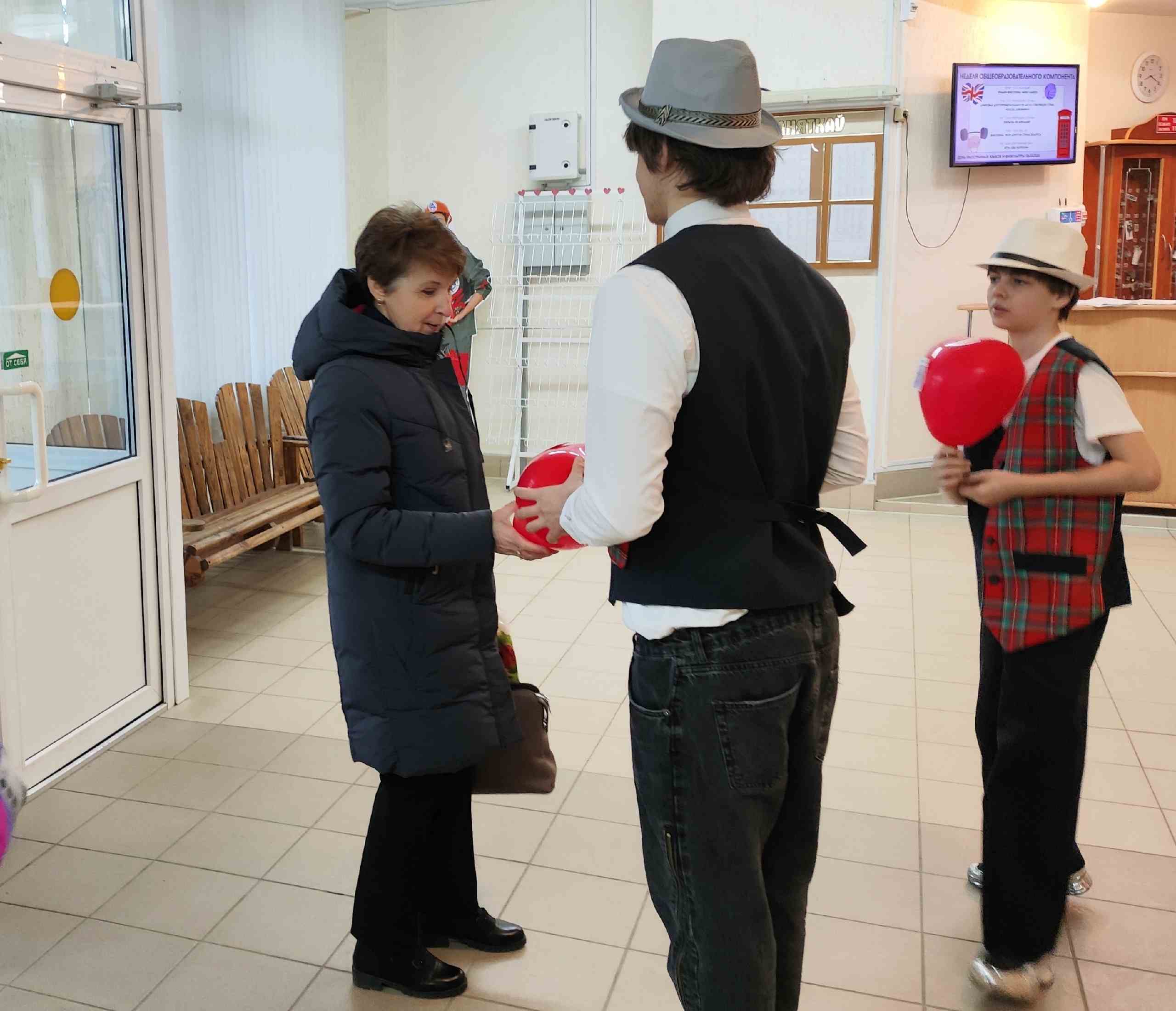 Каждый джентльмен с улыбкой вручал женщинам и девушкам шарики‑сердечки как символ восхищения и открытки с тёплыми пожеланиями.