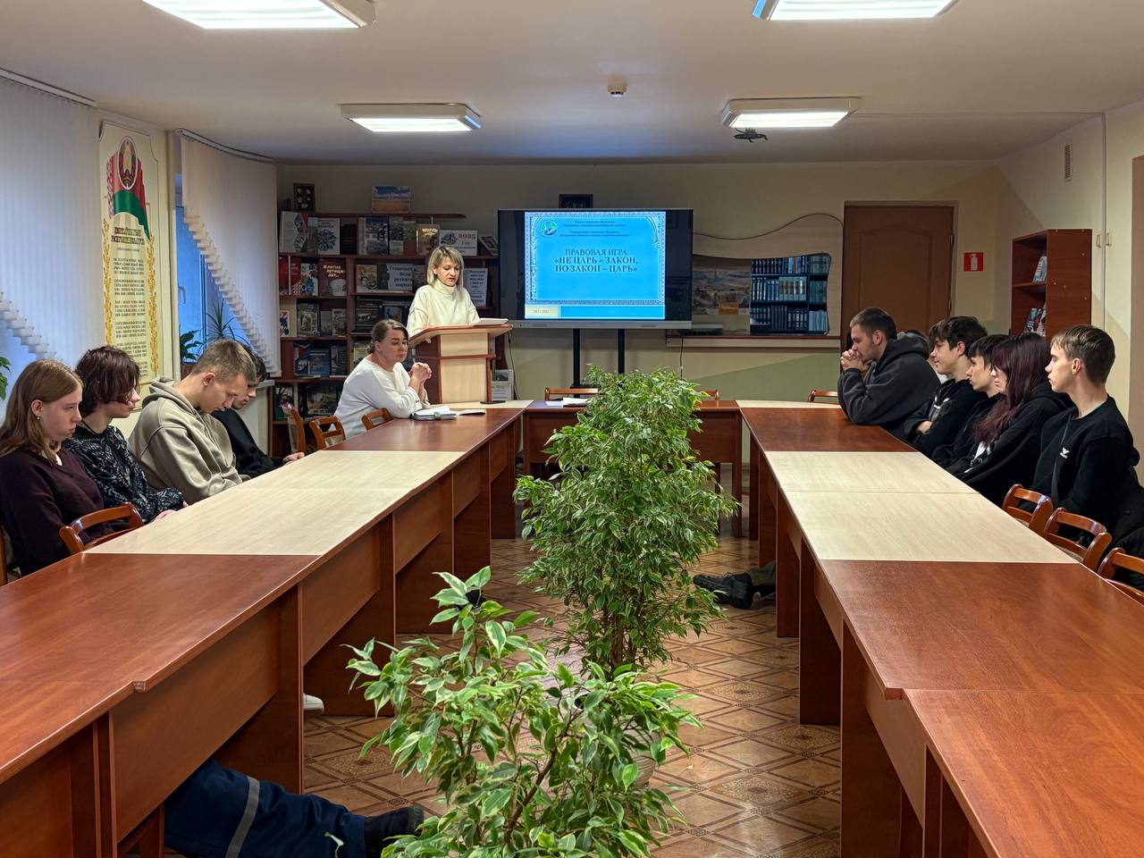 2 декабря представитель ГУО «Гродненский областной социально-педагогический центр» Наталия Викторовна Шатрова провела для учащихся колледжей из числа детей-сирот, детей, оставшихся без попечения родителей очередное занятие в рамках цикла «Безопасное взросление» в формате правовой игры «Не царь – закон, но закон – царь», приуроченной ко всемирному Дню прав ребенка.