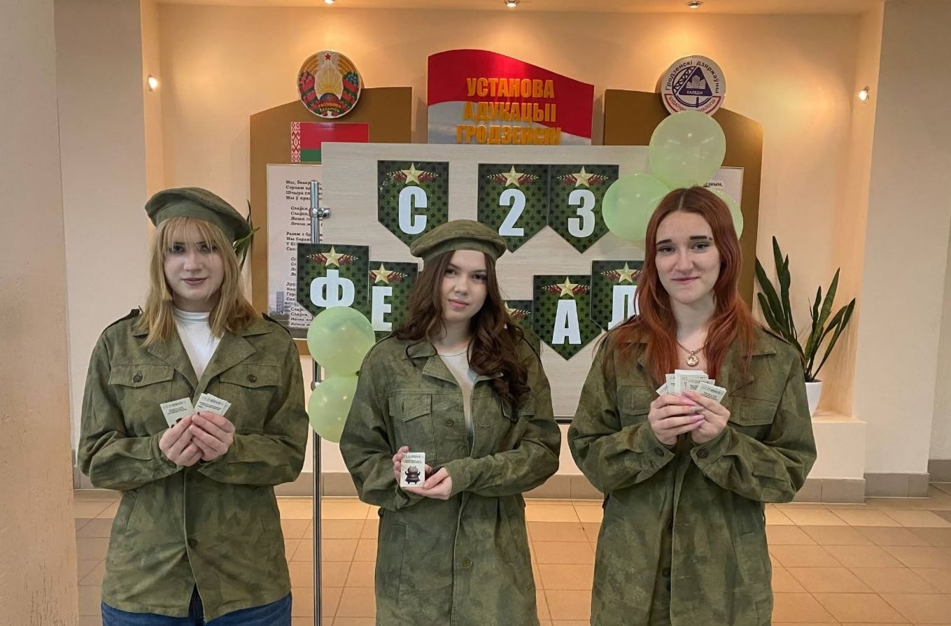 Девушки организовали теплые поздравления с Днём защитников Отечества для всех мужчин и юношей колледжа — от первокурсников до педагогического состава.